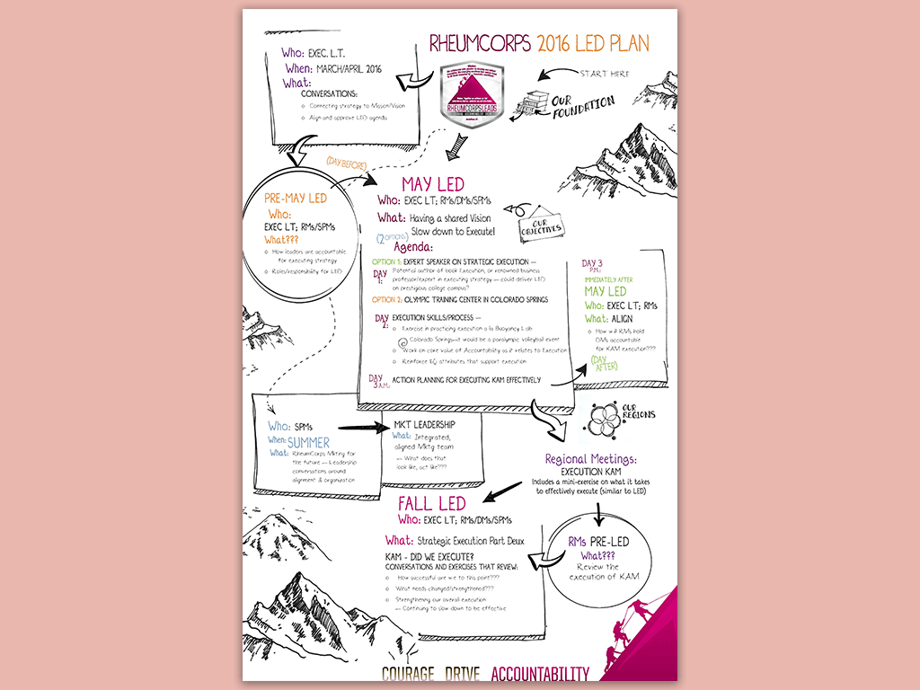 Fire & Rain had an active training team that partnered with Pharma giants, including AbbVie, Genentech, Mead Johnson Nutrition and more for leadership development workshops taking place in standout locations. The agency provided materials that fueled the interest of leadership teams taking part.